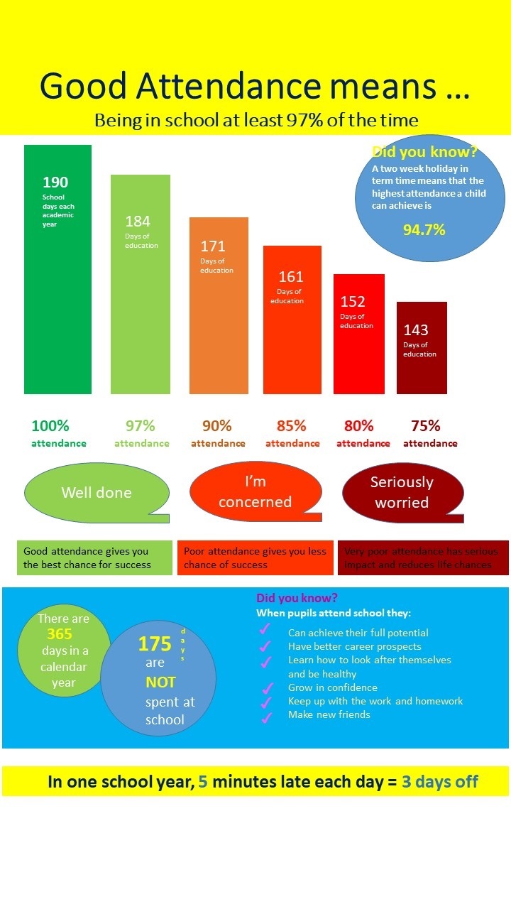 Good attendance and punctuality are vital for success at school, and to establish positive life habits that are necessary for future success.